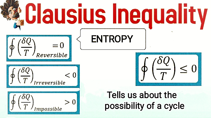 The above equation is known as the "CLAUSIUS INEQUALITY". It tells us whether a cycle (or a process) is reversible or irreversible.